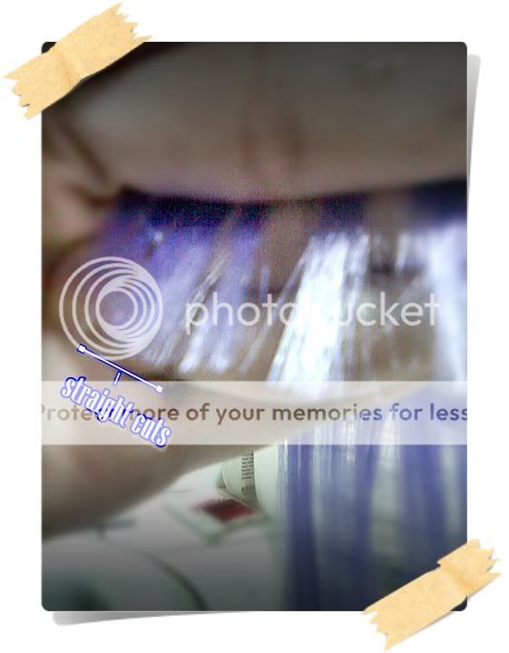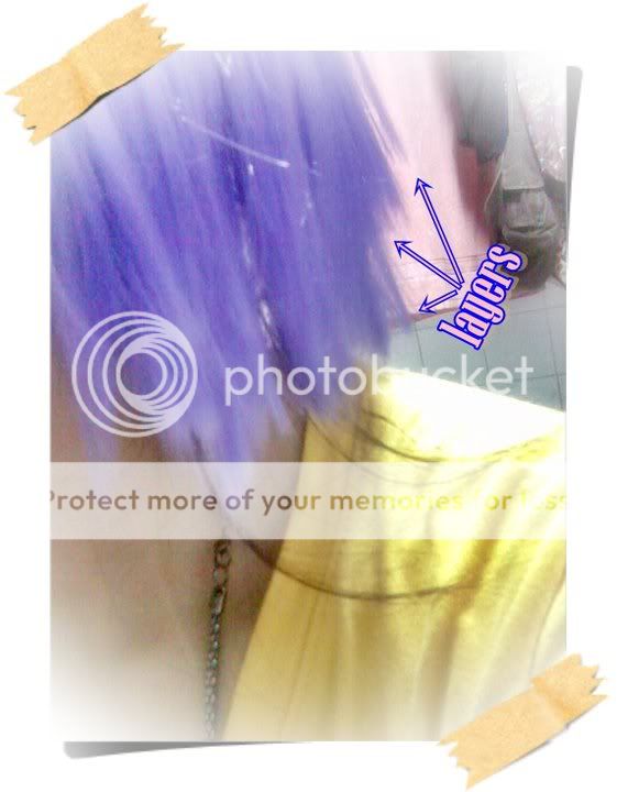 Cut the layers of hair in a straight manner. Then you let your scissors fa-- UGH!! Hard to explain in text! XD So anyway, I cut the same layers diagonally after. So that it would look more layered and not bulky.